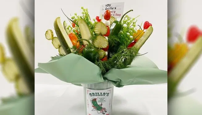 Grillo’s Pickles is bringing back its famous pickle bouquet. It’s a do-it-yourself kit that comes with instructions for how to put the bouquet together. The kit includes an empty 32-ounce pickle container, 15 wooden skewers, artificial floral filler and cellophane, plus a coupon for a free jar of pickles (sold at Target and Whole Foods). It’s being sold online for $20.
