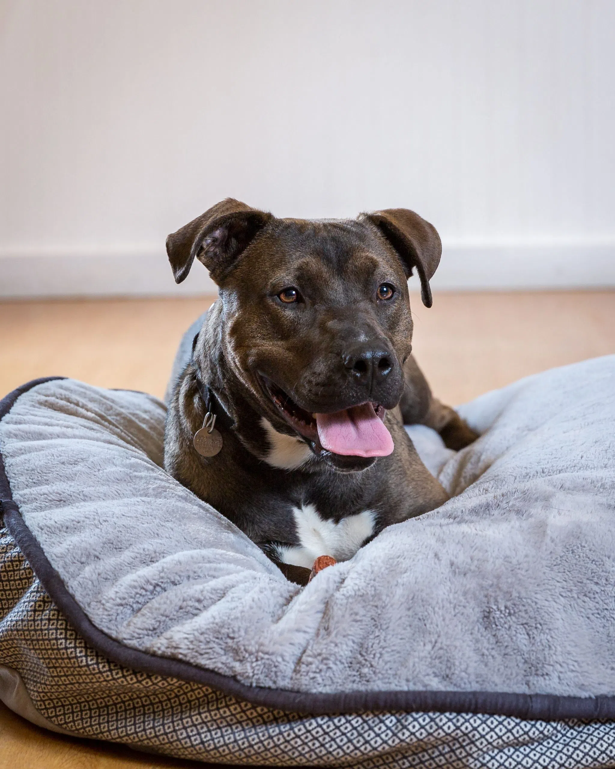 Winston, a one-year-old Bully Breed mix who enjoys long walks, runs, and hikes.