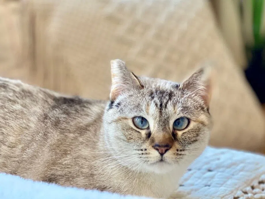 Tad, a clever one-year-old cat who is very active and appreciates a good head scratch and play session with his humans.