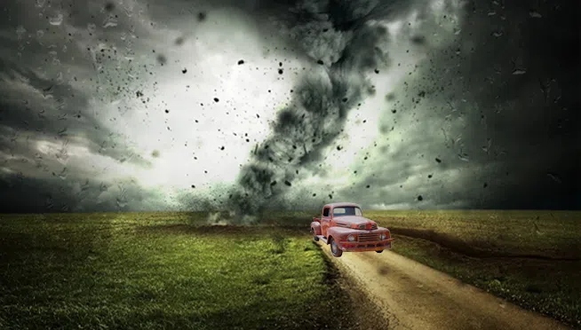 Video shows Pickup Truck roll during a Tornado… and then Drive Away!!