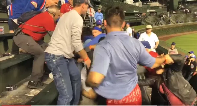 There was a knock-down-drag-out fight in the bleachers at Monday’s Cubs game.There’s a video.And an entire country judging us.It’s two minutes long. Take a peek. If only for the guy ...