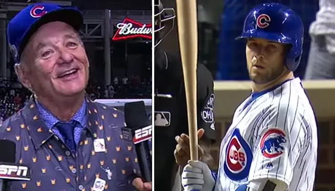 Rookie David Bote not only got the cooler dumped on him after his game-winning Grand-Slam but he also received a hug from arguably the most famous Cubs fan there is. None other than Billy Murray showe...