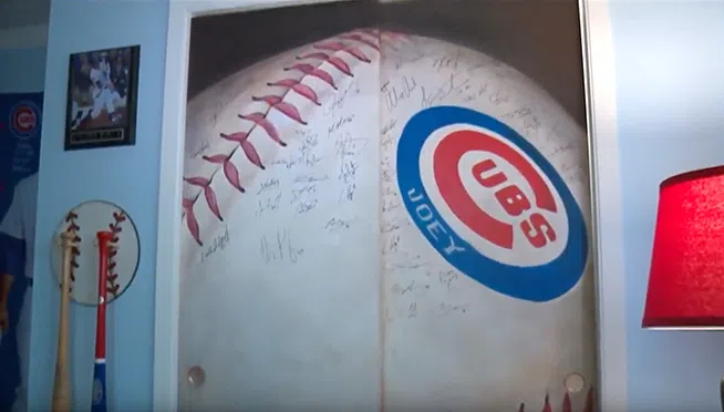 Cubs Super-fan, Joey Ventimiglia came home to find a beautiful Cubs mural painted in his room. Joey was away for treatment on his rare form of cancer while muralist and owner of Crayons Gone Wild, Ken...